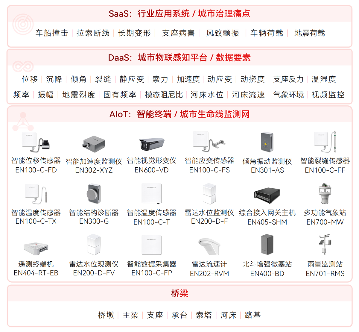 WITBEE?萬賓?是中國首批城市生命線智能監(jiān)測儀器和大數(shù)據(jù)服務提供商,提供智能監(jiān)測儀器、智能基站、云端平臺等智能物聯(lián)網技術與產品線,賦能城市排水、供水、燃氣、供熱、橋梁、建筑、隧道、綜合管廊、河湖等城市基礎設施生命線監(jiān)測感知網絡化建設和智能化管理,對接城市運行管理服務平臺,支撐城市運行“一網統(tǒng)管”,提升城市生命線運行效率和安全,提高城市精細化治理能力。